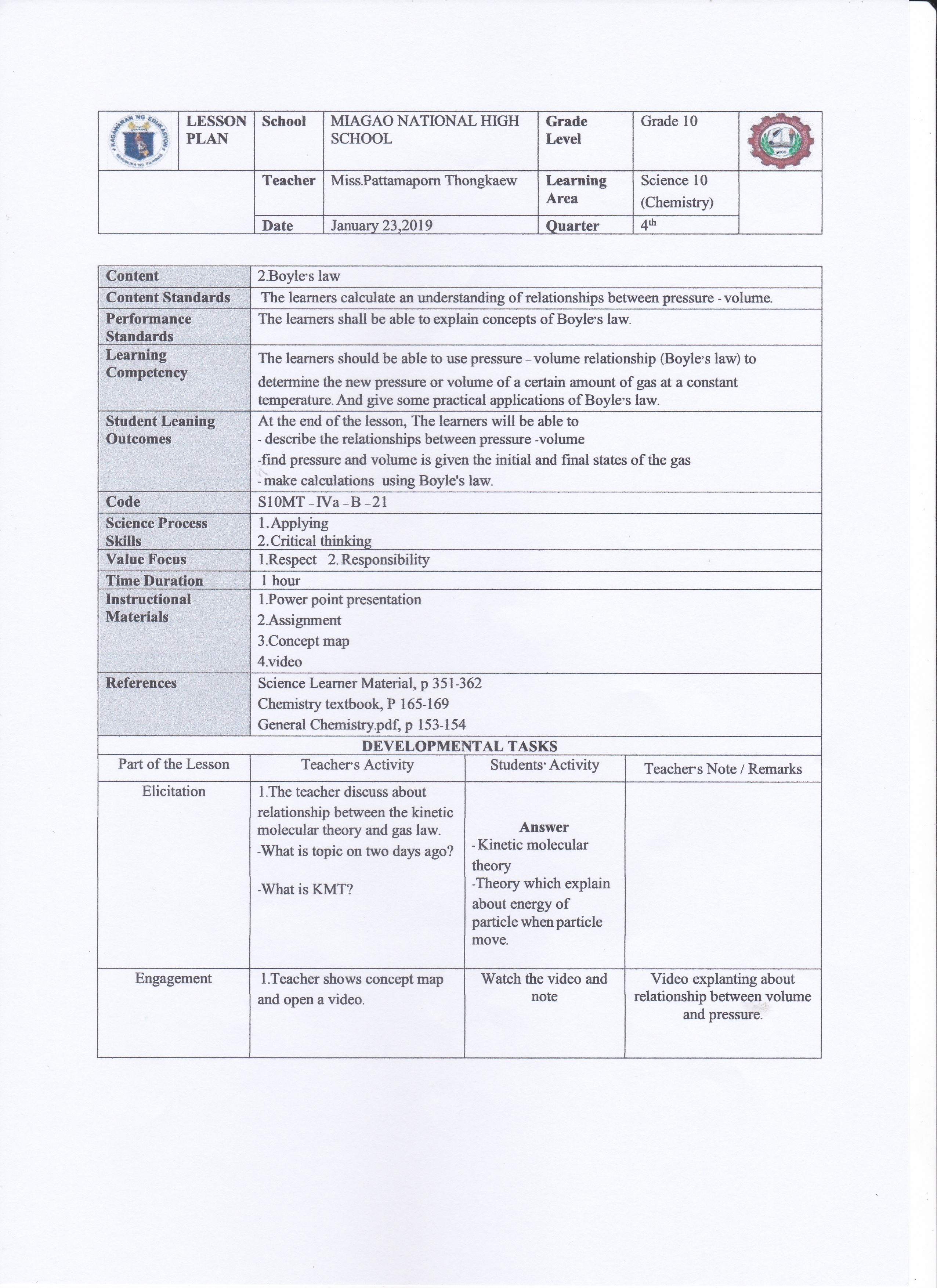 The curriculum that used in school is based on K to 12 Basic Education Curriculum. The curriculum in Thailand and Philippines have a common goal of an education is to developed students become quality people and can apply knowledge in real life but slightly different.