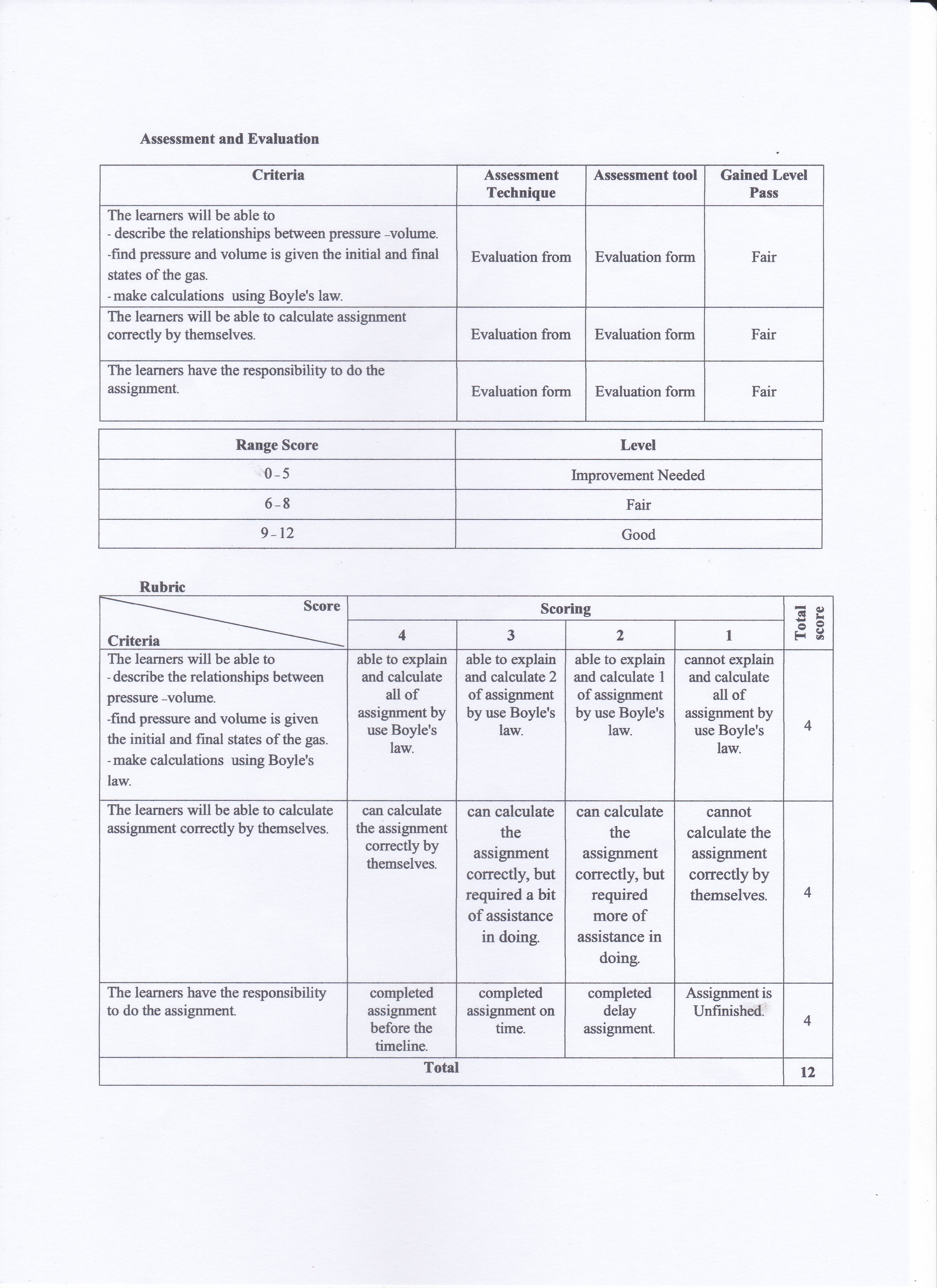 Teacher estimate student achievement in class by check scored points from student assignments, tests, quizzes and exams. Most of the points are focused on midterm examination and final examination. Some teacher uses rubric table for normative. Each assessment holds a curtain weight in the overall grade. Exam results around 50% of the grade, while daily assignment are around 30% and 20% for an attribute and student responsibility in class.