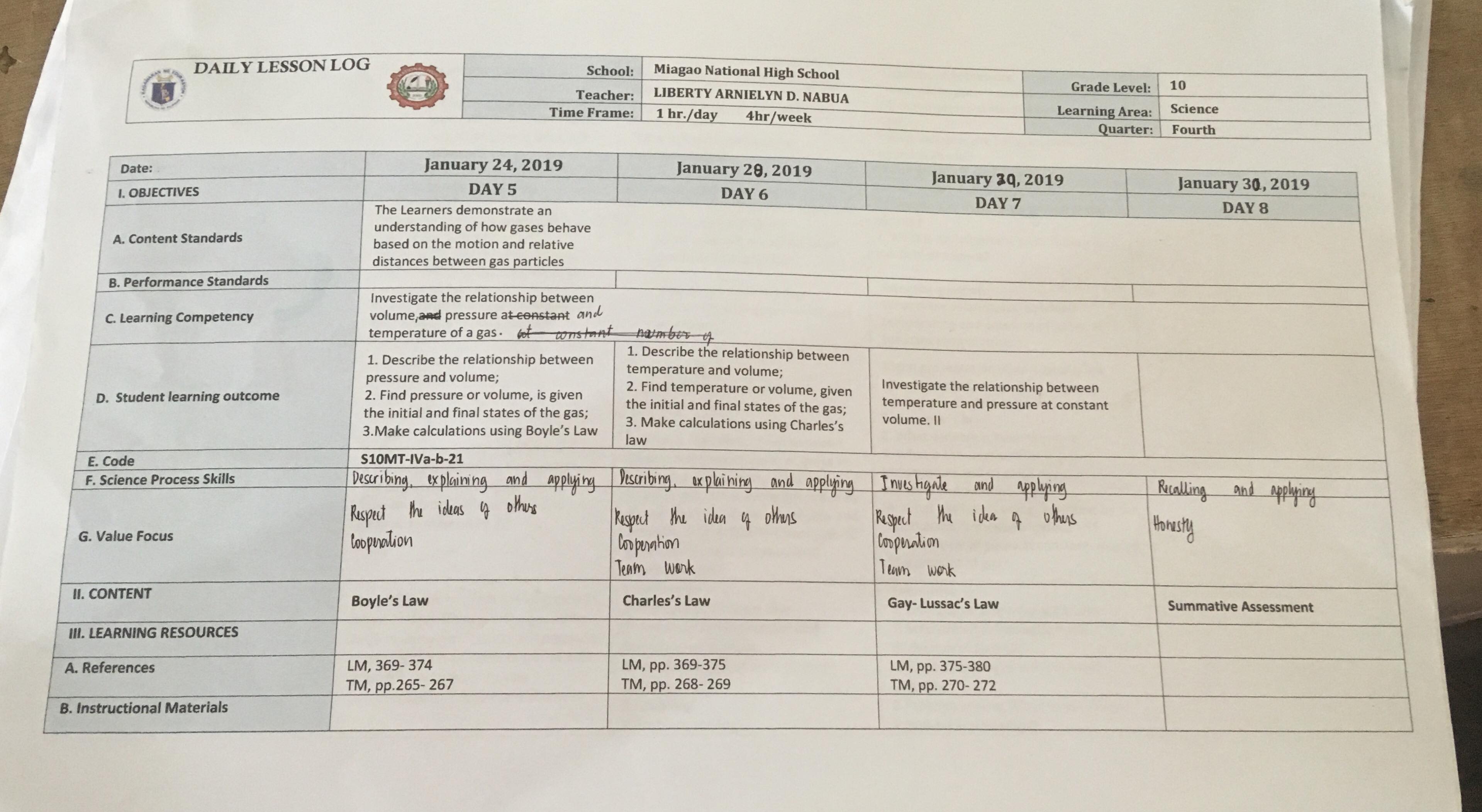 Example of lesson plan in Philippines.